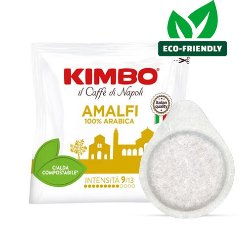 Caffè Cialde Compostable Amalfi 10 cápsulas ESE universales de 44 mm de diámetro La calidad atemporal del café Kimbo en una mezcla potente y decidida. Una explosión de sabor único y persistente.